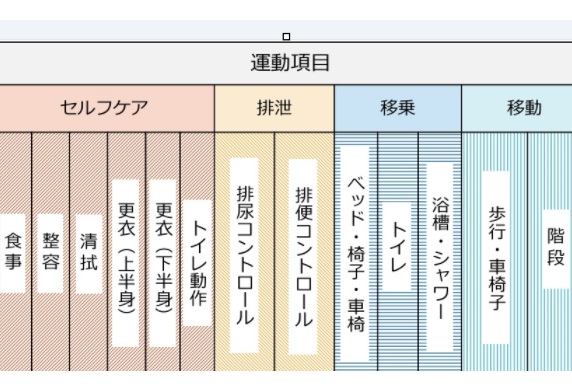 各項目は1〜7点で評価され、「どの動作が自立していて、どの動作に手助けが必要か」 を記録していきます。